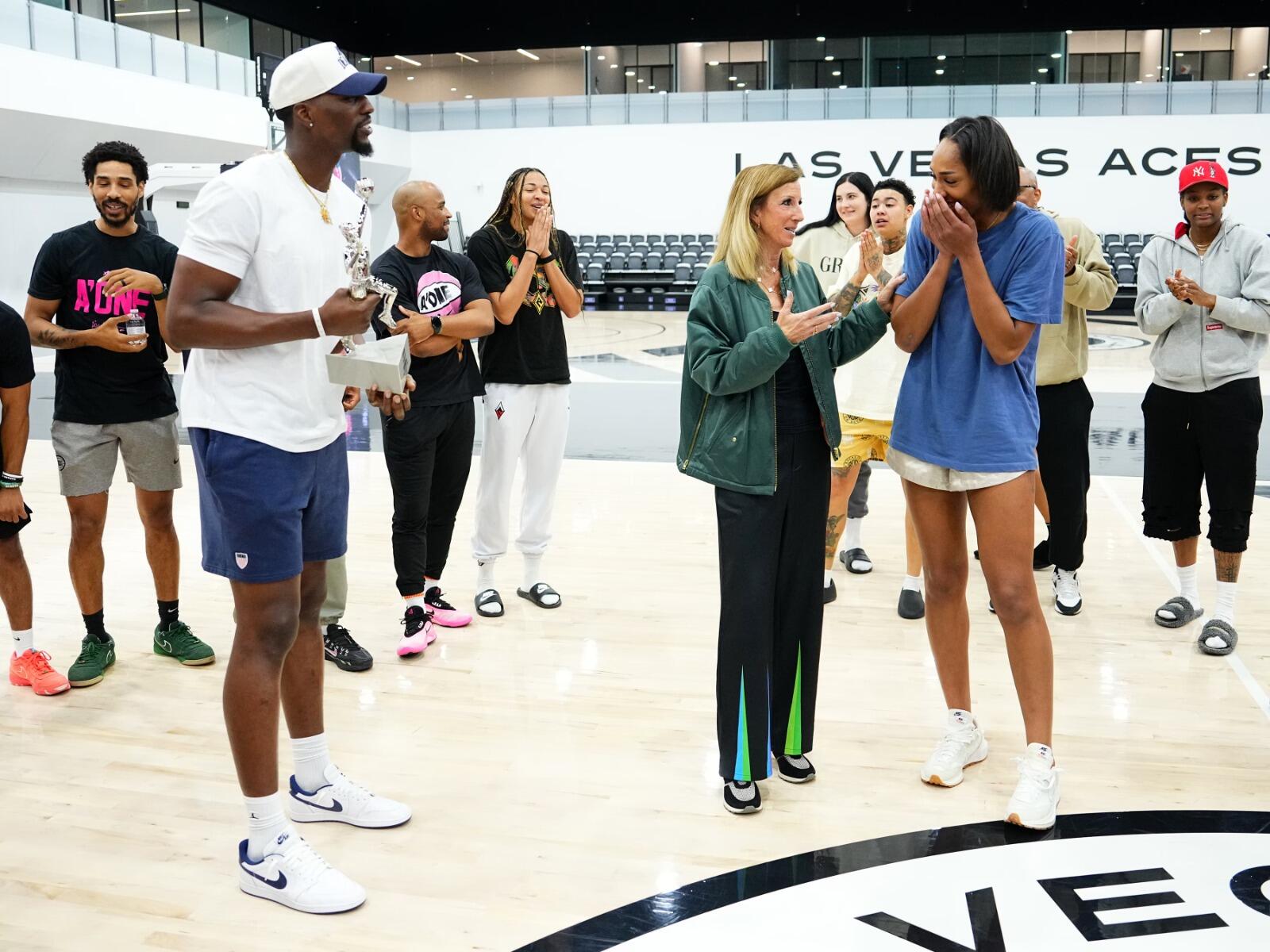 Bam Adebayo turut hadir dalam momen istimewa kekasihanya, A’ja Wilson. Adebayo memberikan kejutan dengan membawakan trofi MVP WNBA 2025 Buat Wilson di fasilitas latihan Las Vegas Aces pada Minggu (21/9) waktu setempat.