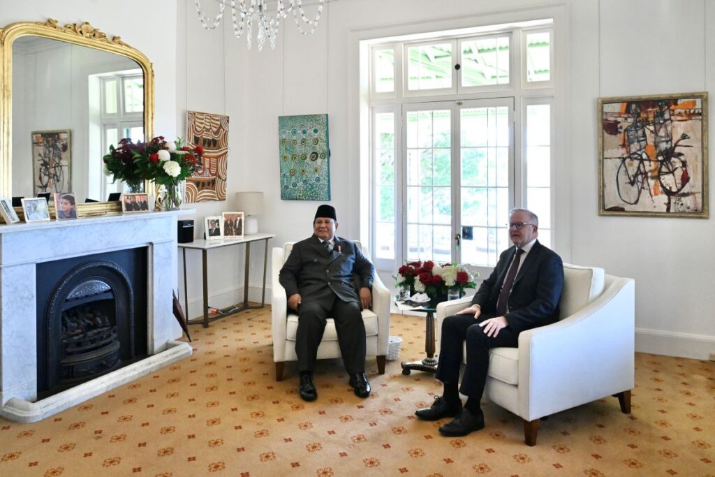 Presiden Republik Indonesia Prabowo Subianto melakukan pertemuan tête-à-tête dengan Perdana Menteri (PM) Australia Anthony Albanese di Kirribilli House, Sydney, pada Rabu, 12 November 2025. Pertemuan ini menjadi salah satu agenda dalam kunjungan kenegaraan Presiden Prabowo ke Australia, sebagai langkah penguatan Interaksi kedua negara di kawasan Indo-Pasifik.