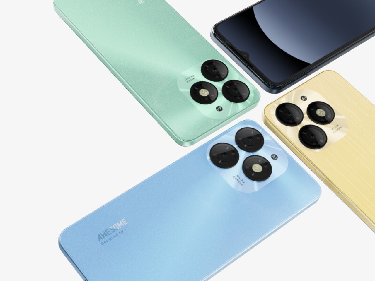 Perusahaan itel secara Tertentu menyebut desain bodi perangkat tersebut dengan Futuristic Next-Gen Desain. Terdapat empat pilihan Corak yang Dapat dipertimbangkan di mana meliputi Starlish Black, Brilliant Gold, Field Green, dan Azure Blue.