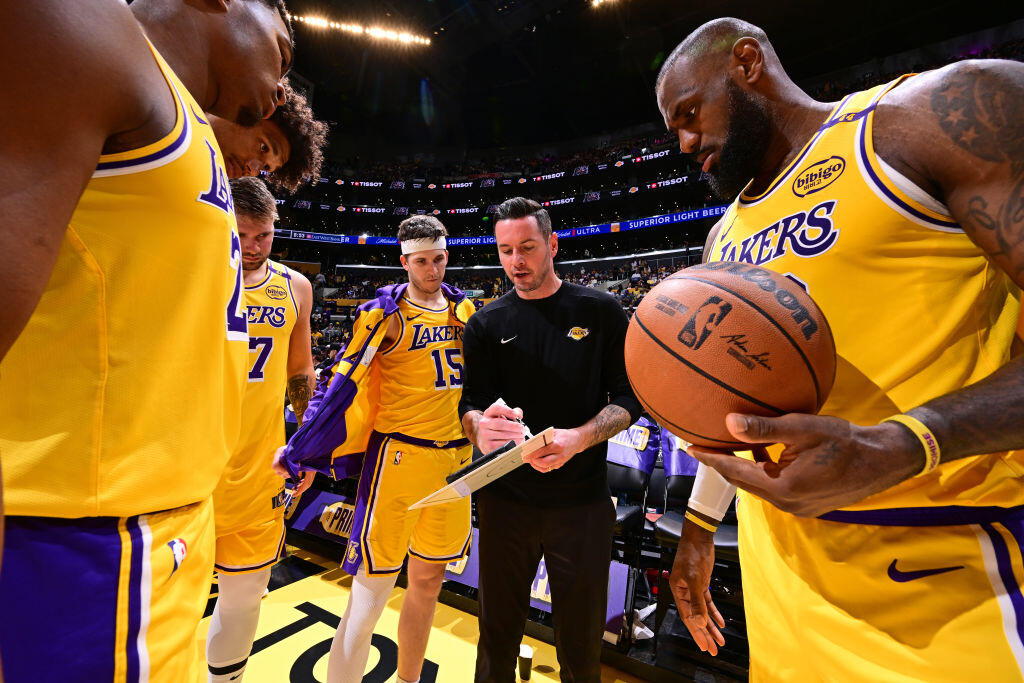 Instruktur Lakers JJ Redick sedang menyiapkan starting line up yang terdiri dari Luka Doncic, Austin Reaves, LeBron James, Rui Hachimura, dan Deandre Ayton. Hanya Ayton sebagai pemain baru yang menggantikan posisi Jaxson Hayes.