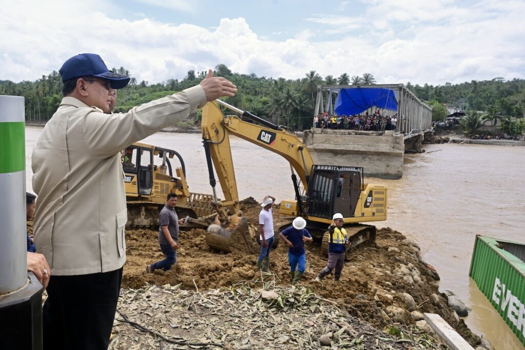 “Sekalian usaha kita kerahkan. Nanti Sekalian jembatan kita akan perbaiki. Mudah-mudahan 1 Tamat 2 minggu. Karena masalahnya adalah tembus ini baru kita Dapat kerja yang lain,” lanjut Presiden Prabowo.