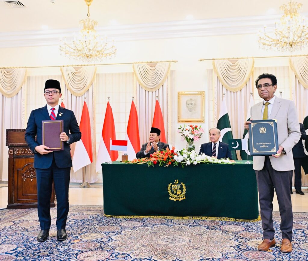 Indonesia dan Pakistan sepakat Buat memperkuat kemitraan melalui pertukaran nota kesepahaman atau memorandum of understanding (MoU) dan perjanjian kerja sama di sejumlah sektor. Pertukaran Arsip tersebut berlangsung di kediaman Formal Perdana Menteri (PM) Pakistan di Islamabad pada Selasa, 9 Desember 2025 dan disaksikan secara langsung oleh Presiden Republik Indonesia, Prabowo Subianto dan PM Pakistan Shehbaz Sharif.