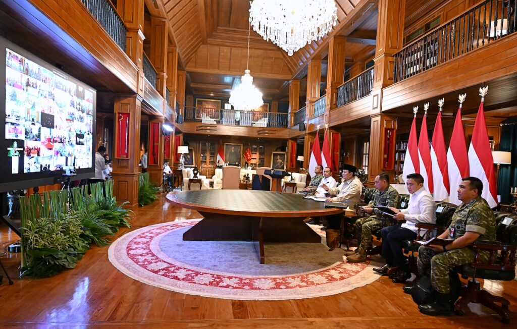 Presiden Prabowo Subianto melakukan dialog langsung dengan para kepala daerah, aparat, dan masyarakat dari berbagai…