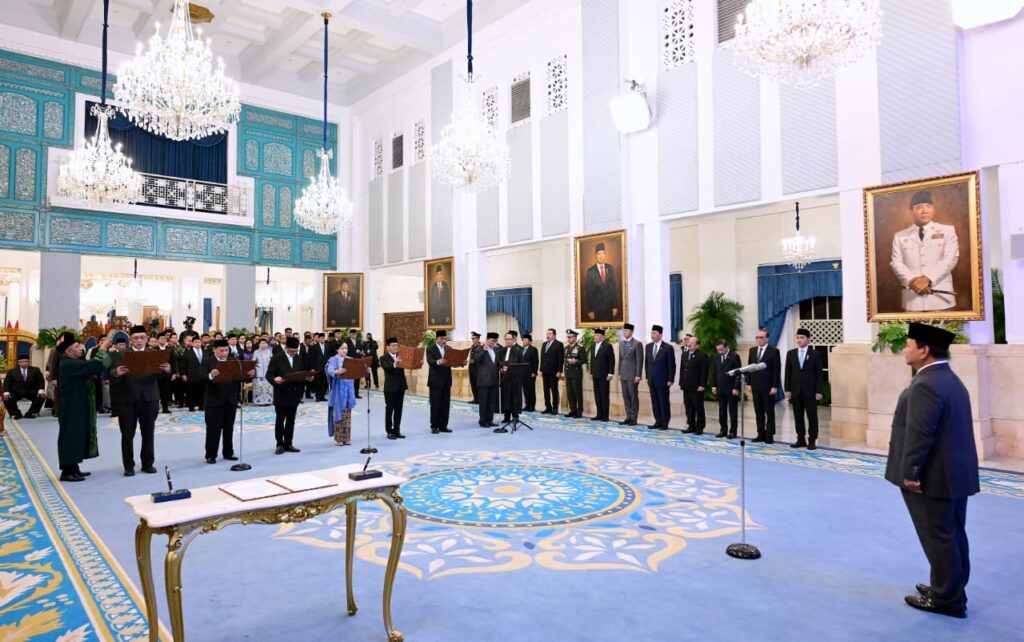Presiden Prabowo Subianto menyimak secara langsung pengucapan sumpah/janji sejumlah Personil Komisi Yudisial (KY) Buat masa jabatan tahun 2025–2030. Pengucapan sumpah/janji tersebut digelar di Istana Negara, Jakarta, pada Jumat, 19 Desember 2025.