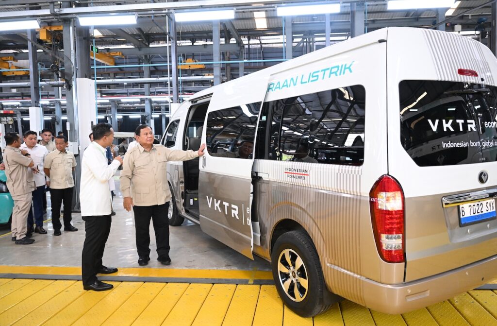 “Dengan mengucap bismillahirrahmanirrahim, pada siang hari ini, Kamis, 9 April 2026, saya Prabowo Subianto Presiden Republik Indonesia, dengan ini meresmikan Pabrik Perakitan Kendaraan Komersial Berbasis Listrik VKTR,” ucap Presiden Prabowo.